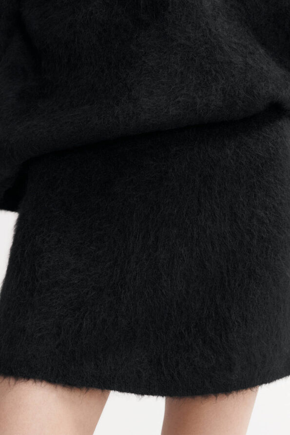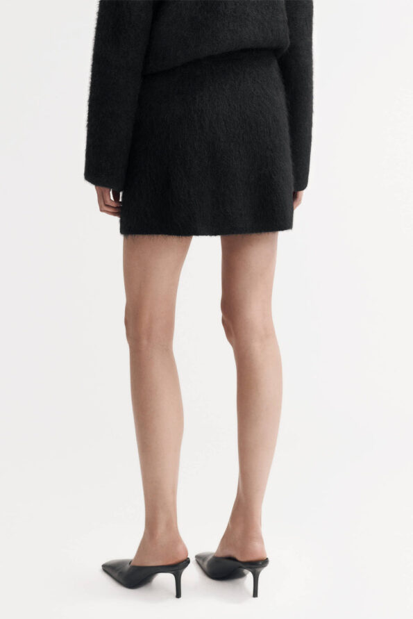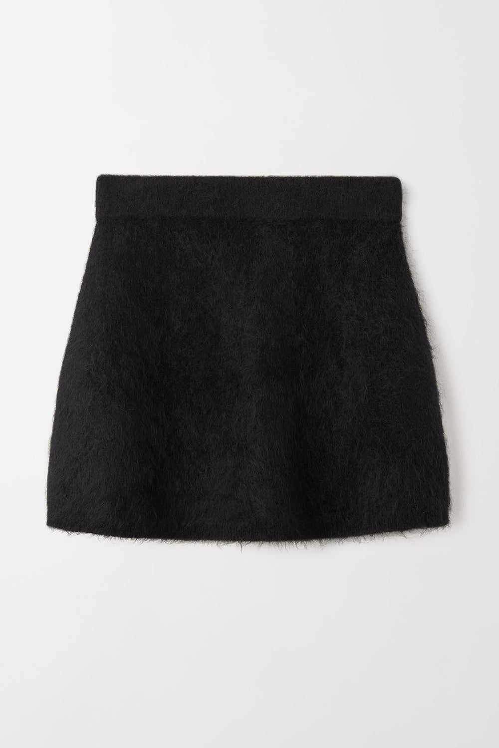 Brushed knit mini skirt with elastic waist in an alpaca blend.