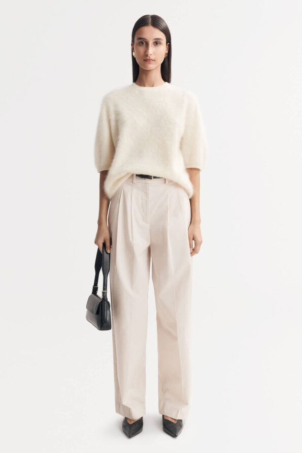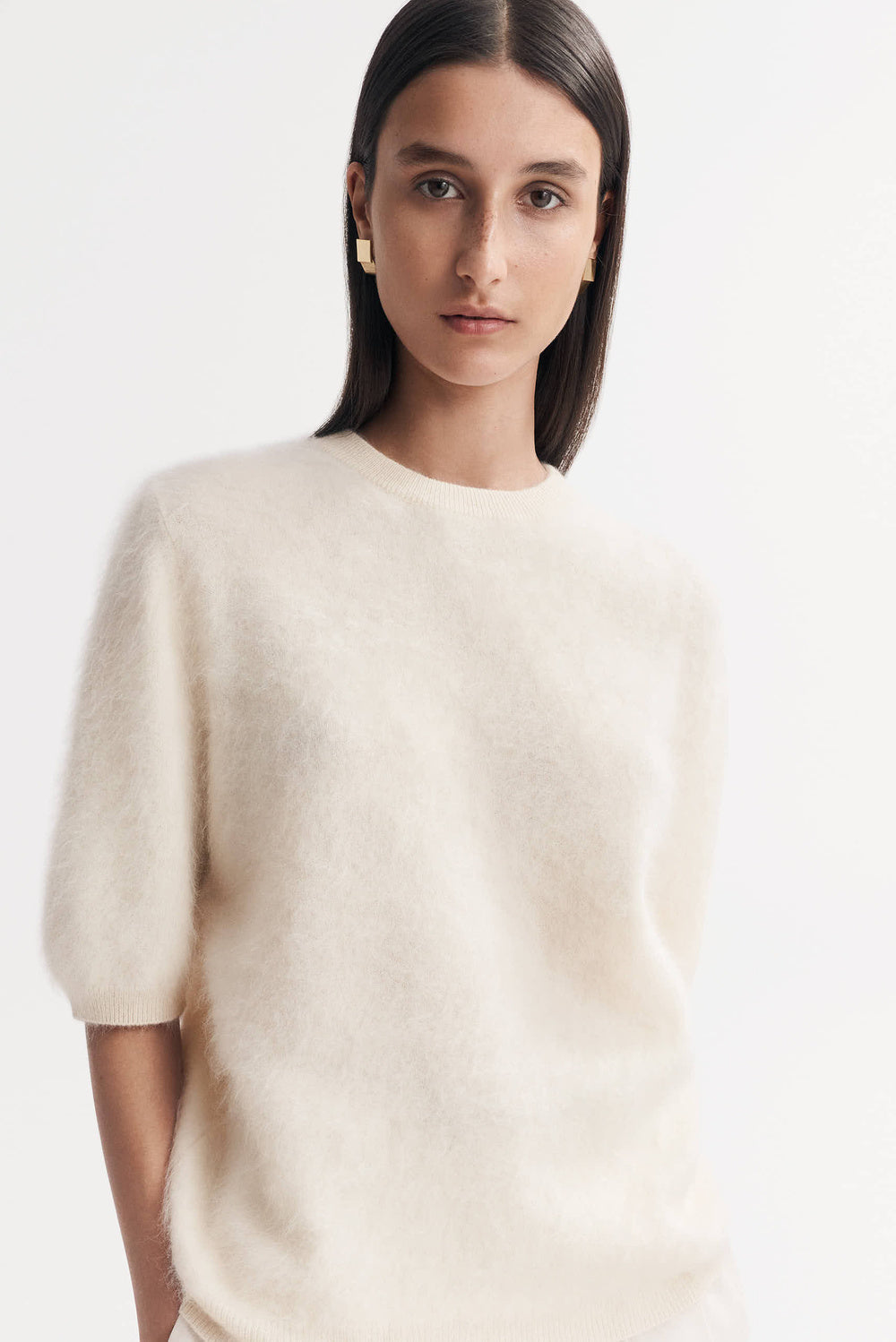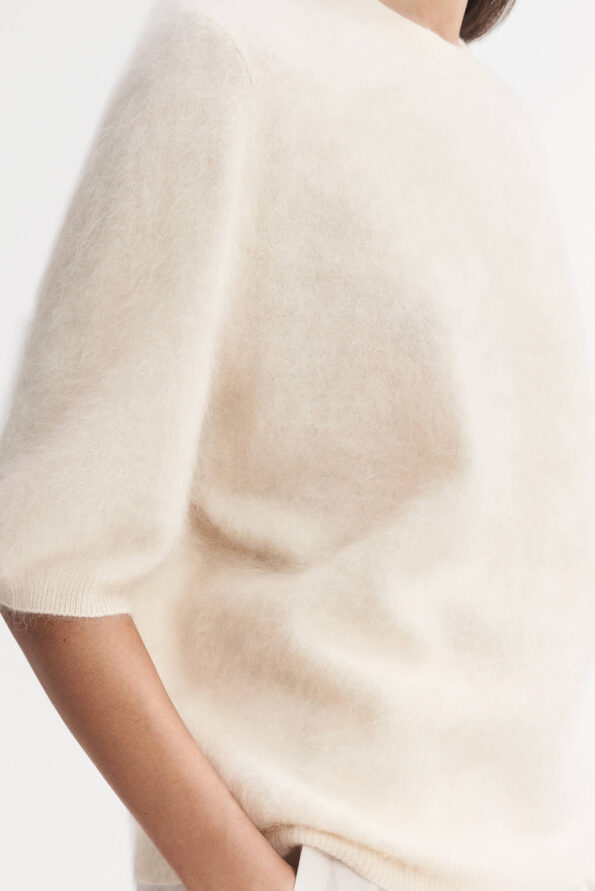 Short sleeved brushed knit sweater in 100% cashmere. Formerly known as our Cuddle Short Sleeve, it¡¯s the same great style, you already love. All that has change is the name.