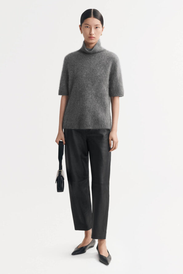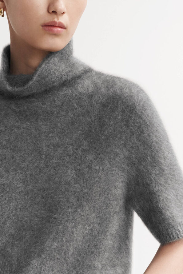 Brushed knit short sleeve turtleneck sweater in 100% cashmere. Formerly known as our Cuddle Turtleneck, it¡¯s the same great style, you already love. All that has change is the name.