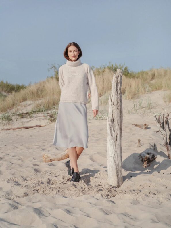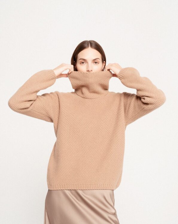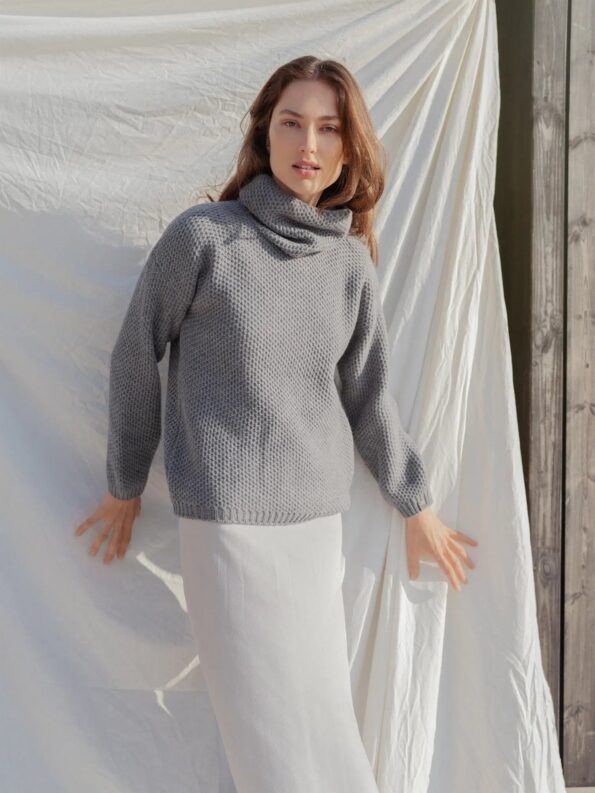 Elevate your wardrobe with this exquisite merino and cashmere wool sweater ?C a perfect gift for those who appreciate timeless and eco-conscious fashion. Meticulously hand-knitted, this high-quality sweater is every woman’s go-to solution for those busy days when outfit choices are a challenge.