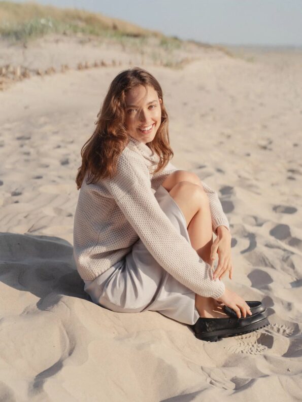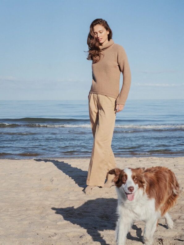 Elevate your wardrobe with this exquisite merino and cashmere wool sweater ?C a perfect gift for those who appreciate timeless and eco-conscious fashion. Meticulously hand-knitted, this high-quality sweater is every woman’s go-to solution for those busy days when outfit choices are a challenge.