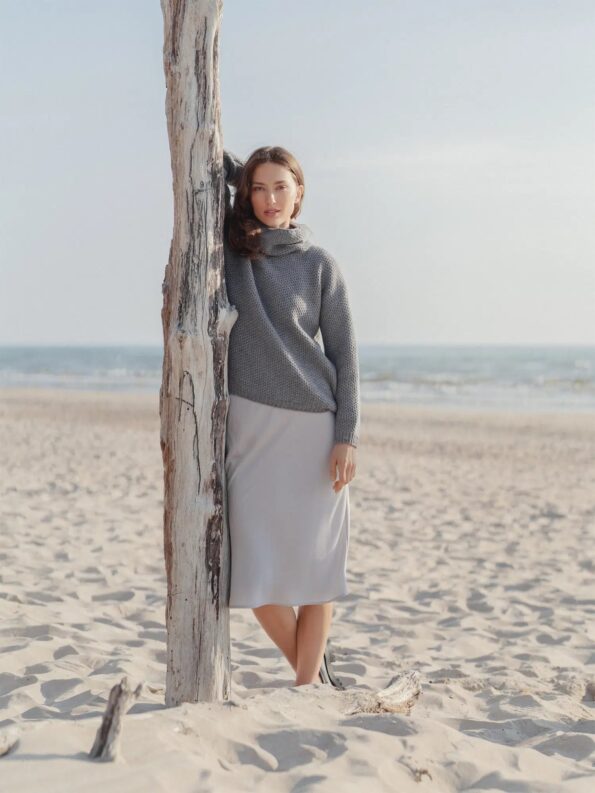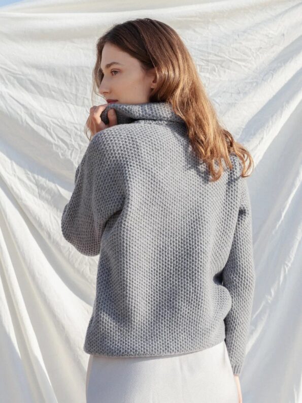 Elevate your wardrobe with this exquisite merino and cashmere wool sweater ?C a perfect gift for those who appreciate timeless and eco-conscious fashion. Meticulously hand-knitted, this high-quality sweater is every woman’s go-to solution for those busy days when outfit choices are a challenge.