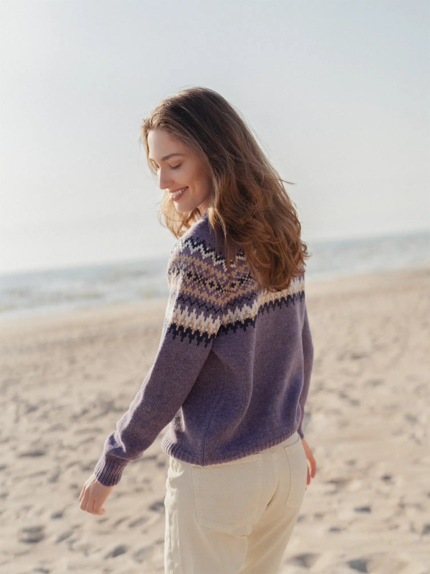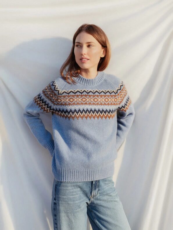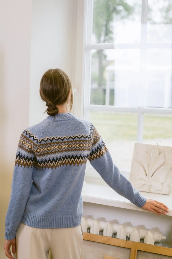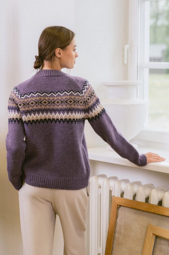 Step into the past with our nostalgic sweater adorned with charming Scandinavian patterns. This timeless design is your versatile companion for all seasons. Our women’s pullover, crafted from a blend of knitted merino and cashmere wool yarns, effortlessly transitions from office elegance to casual comfort. Meet Jumper FREYJA, a piece inspired by Nordic aesthetics and designed for ease of wear.