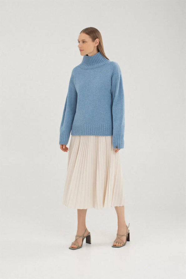 • Turtleneck dropped sleeves pullover with extended loose sleeves