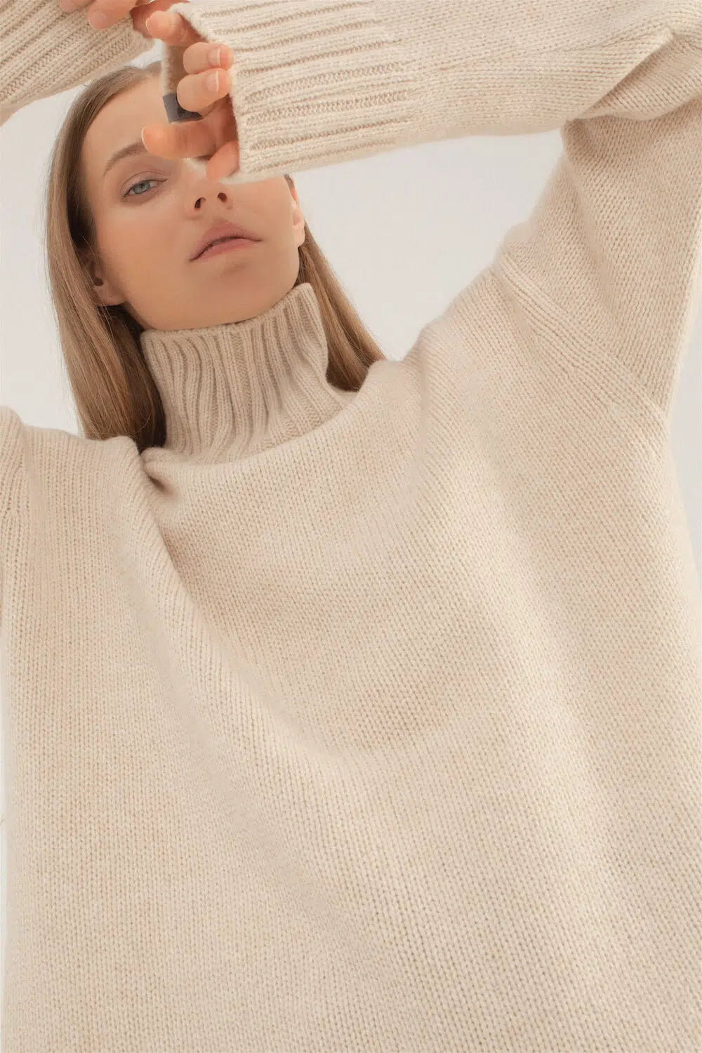 Cashmere Merino Chunky High Neck Relaxed Jumper BIANKA