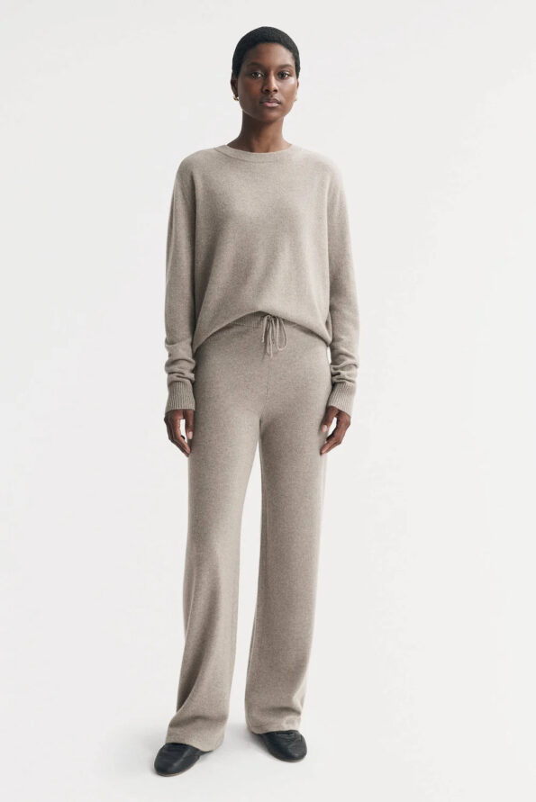 Fine knit two piece set consisting of pants and a sweater in 100% cashmere.