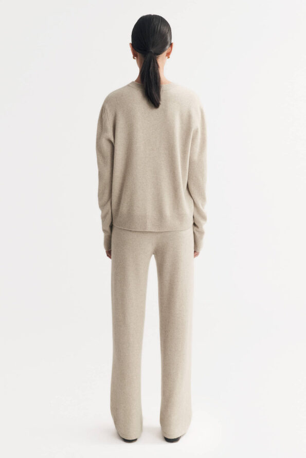 Fine knit two piece set consisting of pants and a sweater in 100% cashmere.