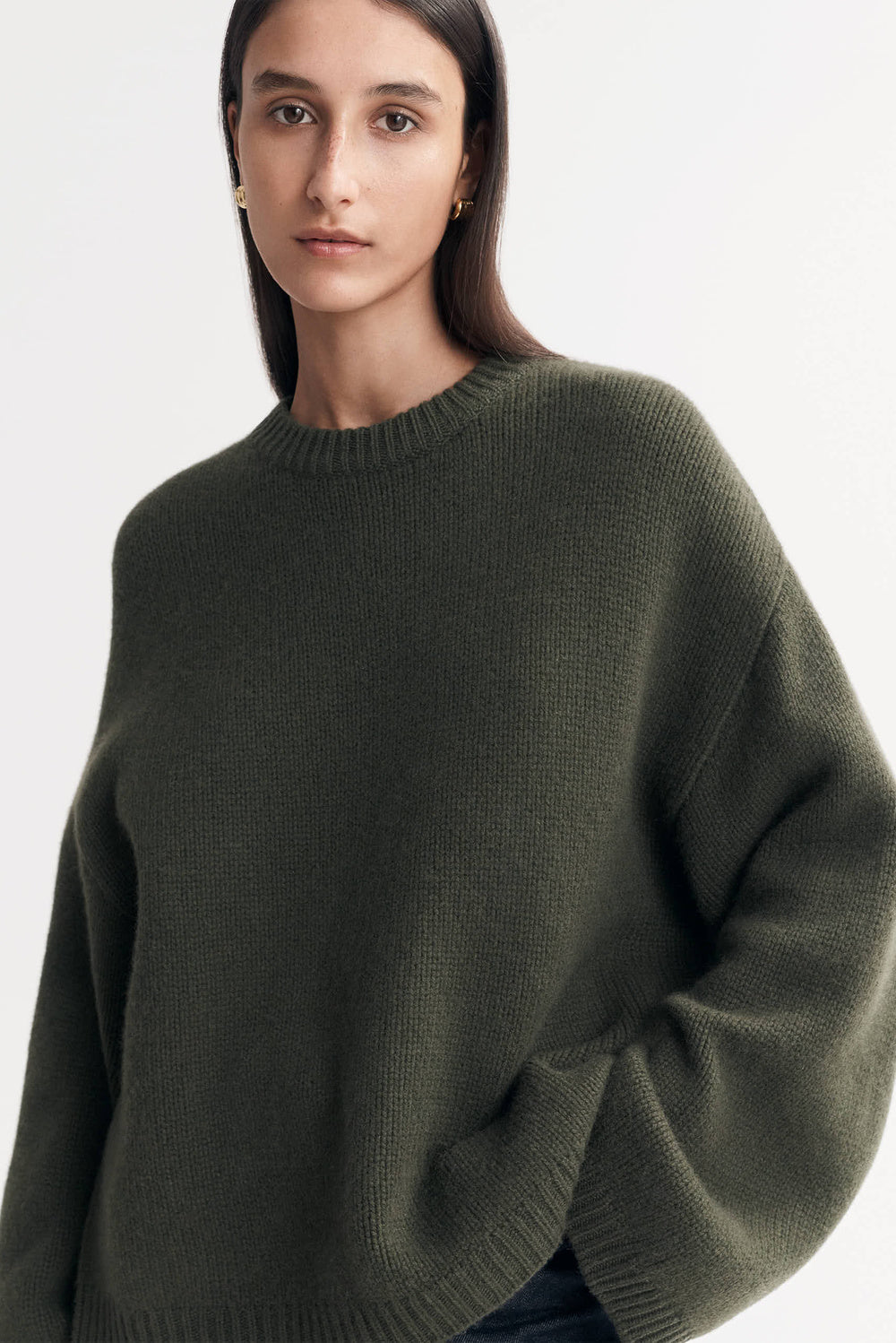 Chunky knit crewneck sweater in 100% cashmere.