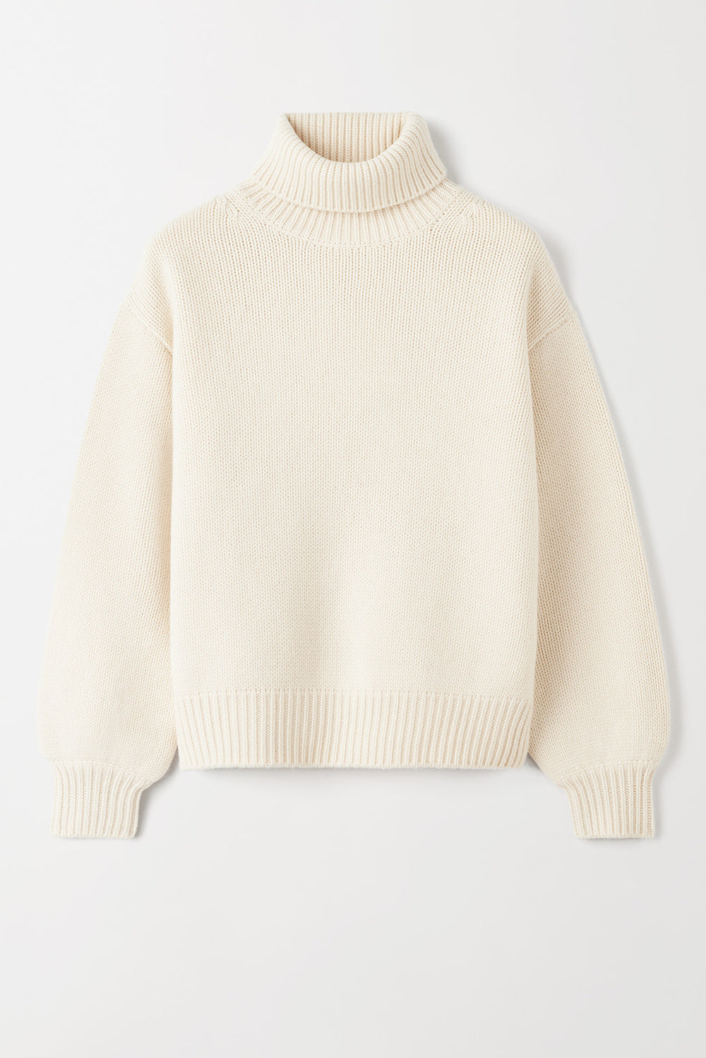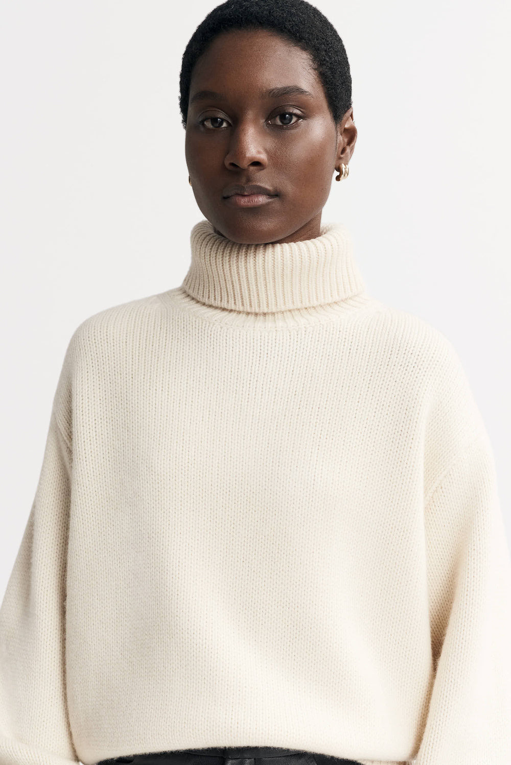 Chunky knit turtleneck sweater in a wool and cashmere blend.