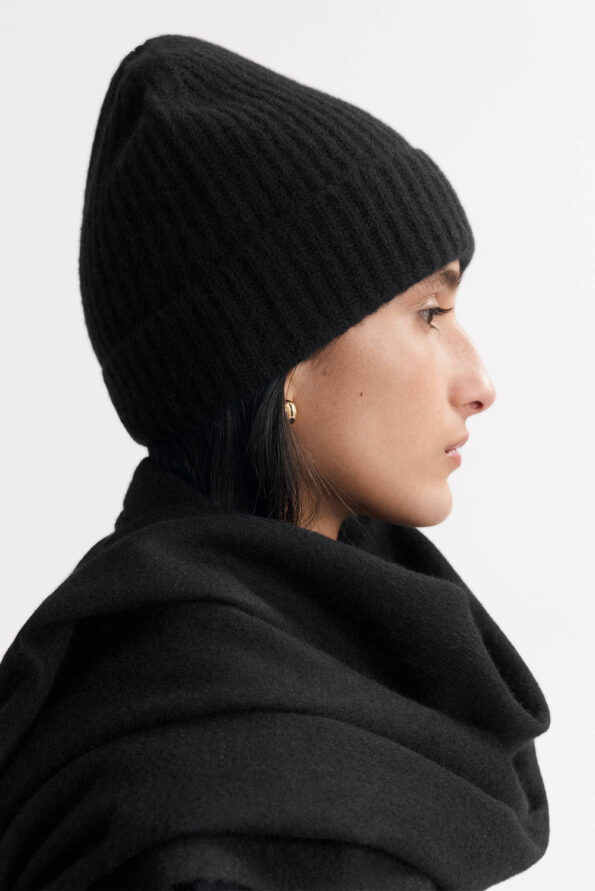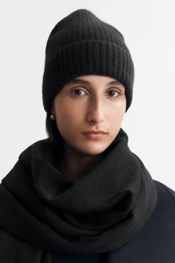 Ribbed knit beanie in 100% cashmere. One size and unisex.