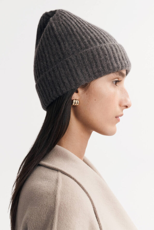 Ribbed knit beanie in 100% cashmere. One size and unisex.