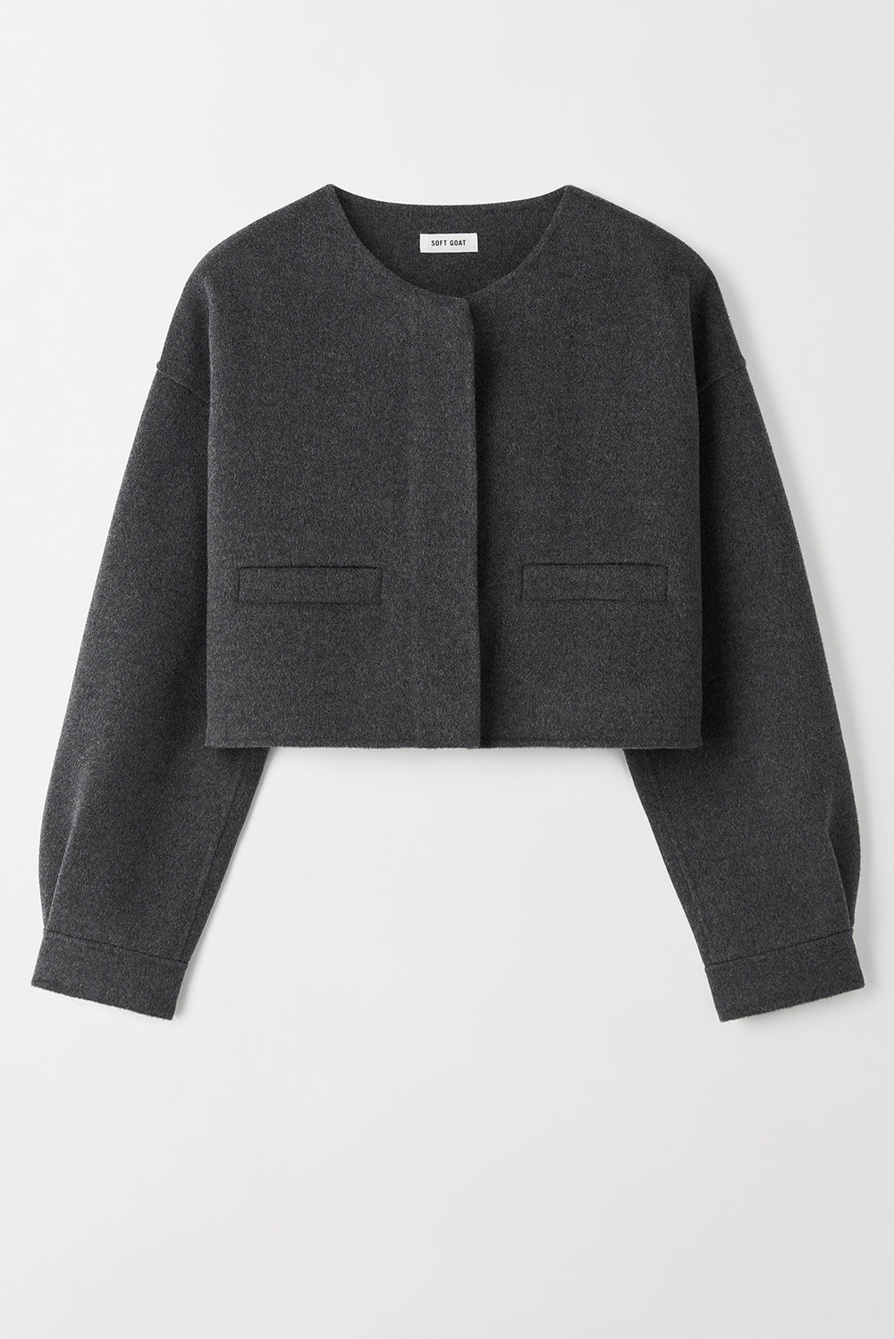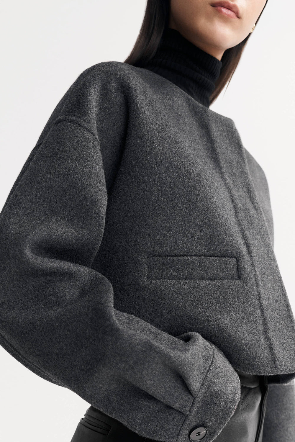 Woven cropped jacket with pockets in a wool and cashmere blend.