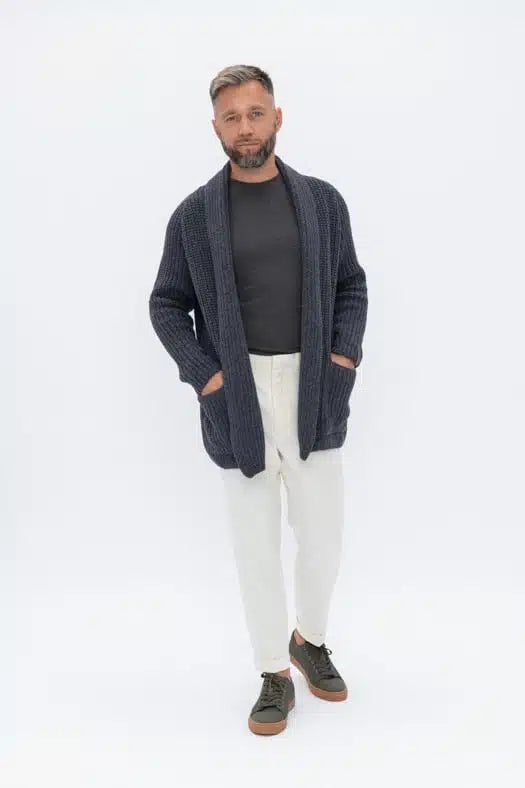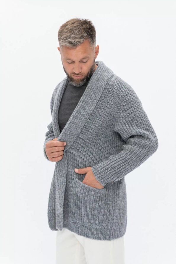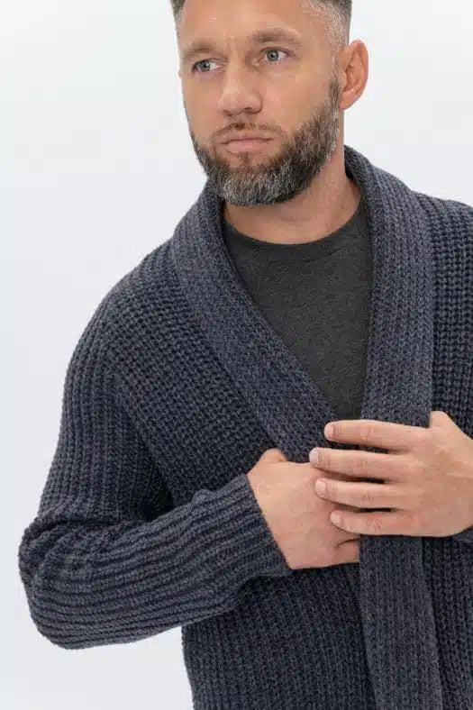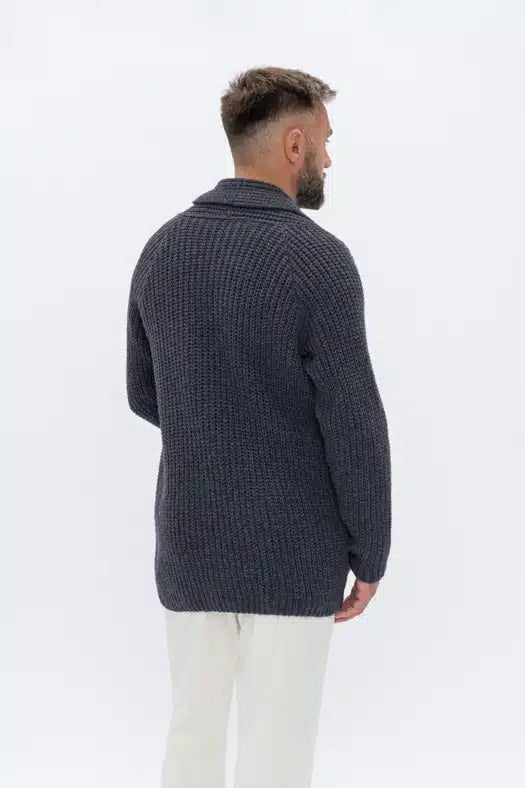 Dark gray wool cardigan for men BENJAMIN