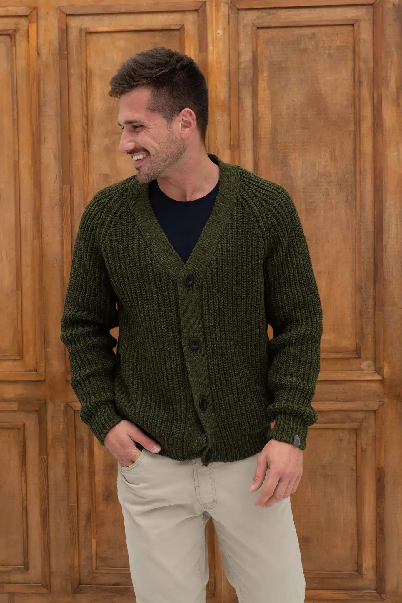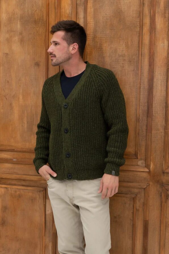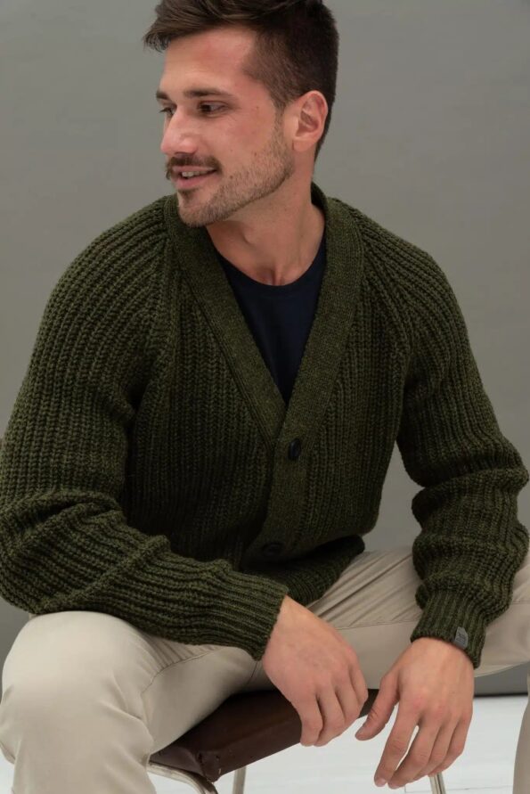 Khaki merino wool buttoned sweater GILA