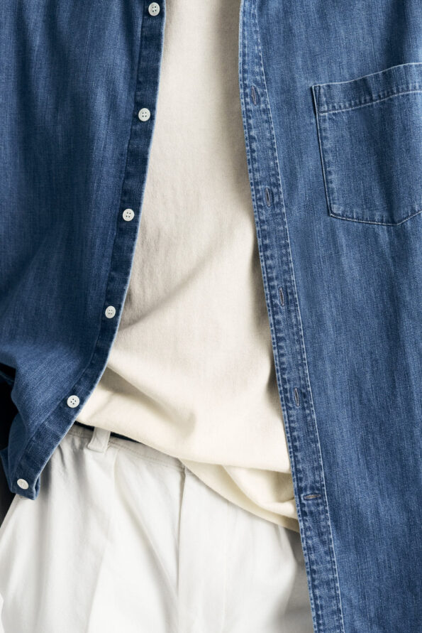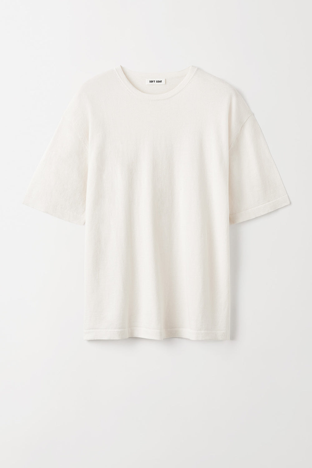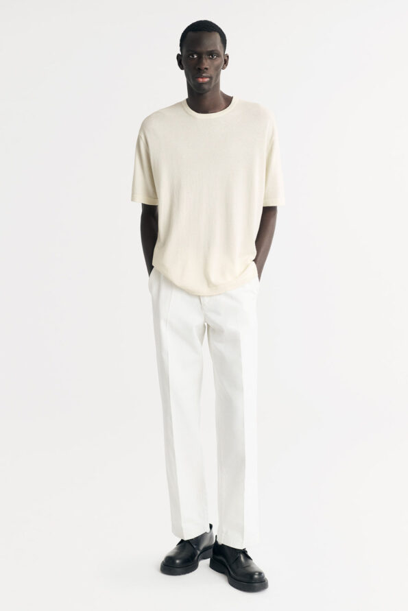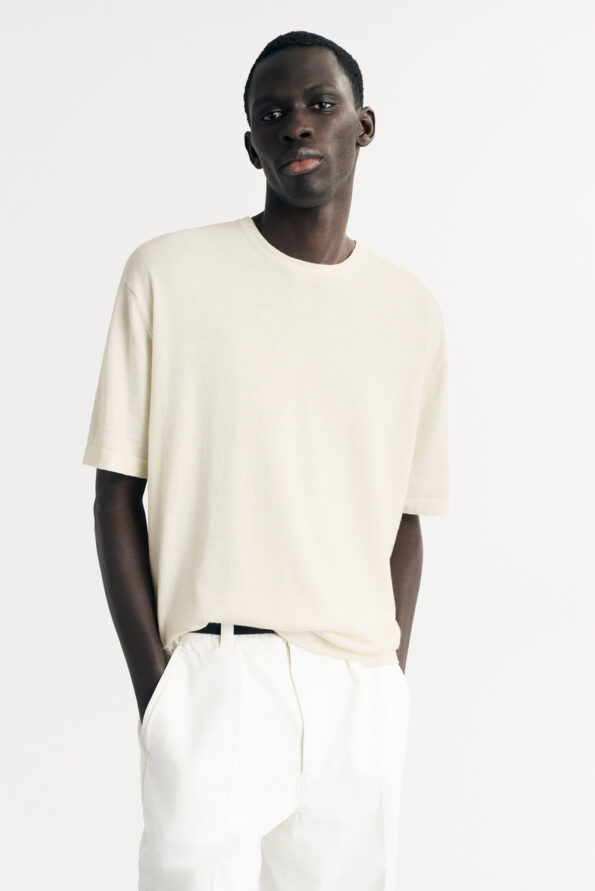 Men’s fine knit t?shirt in a cotton and? cashmere blend.
