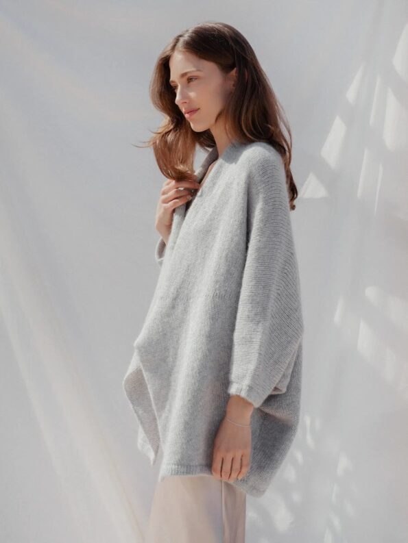 Indulge yourself in the luxury of our meticulously hand-knitted poncho, thoughtfully created with premium mohair wool and the finest pure new merino wool yarns, ensuring unparalleled softness and warmth.