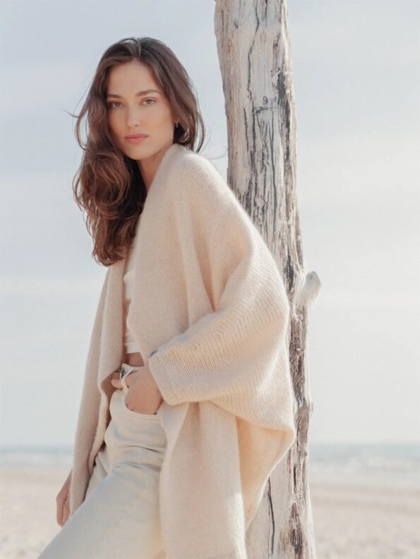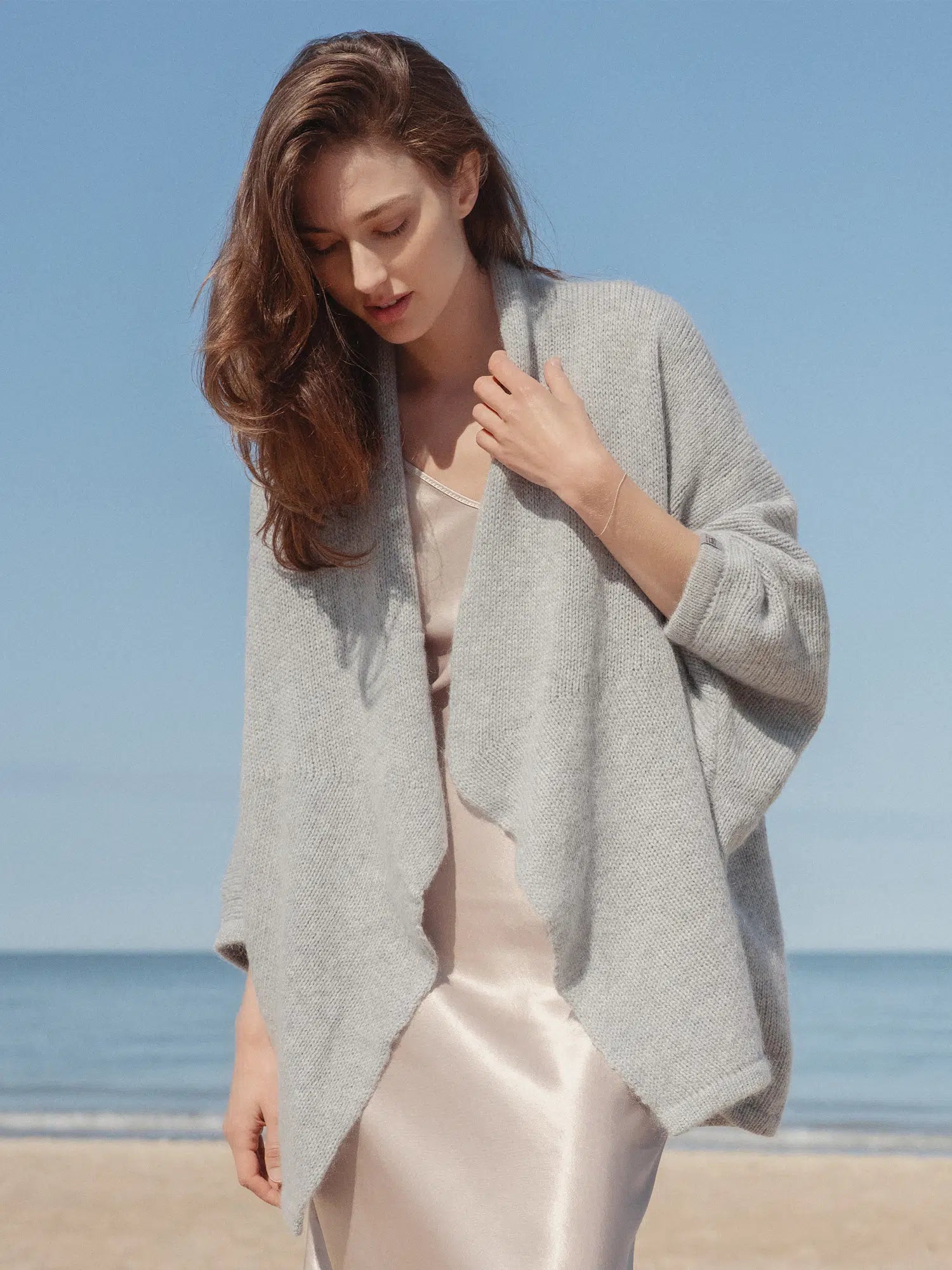 Capture the allure of our soft and enchanting open-front knitted top for women, designed to evoke the spirit of the holiday season while elegantly draping over your shoulders. Elevate your ensemble by pairing it with our exquisitely crafted mohair and merino wool poncho, offering a delightful blend of comfort and coziness. Perfect for your idyllic seaside escapes or enchanting family journeys through the forest.