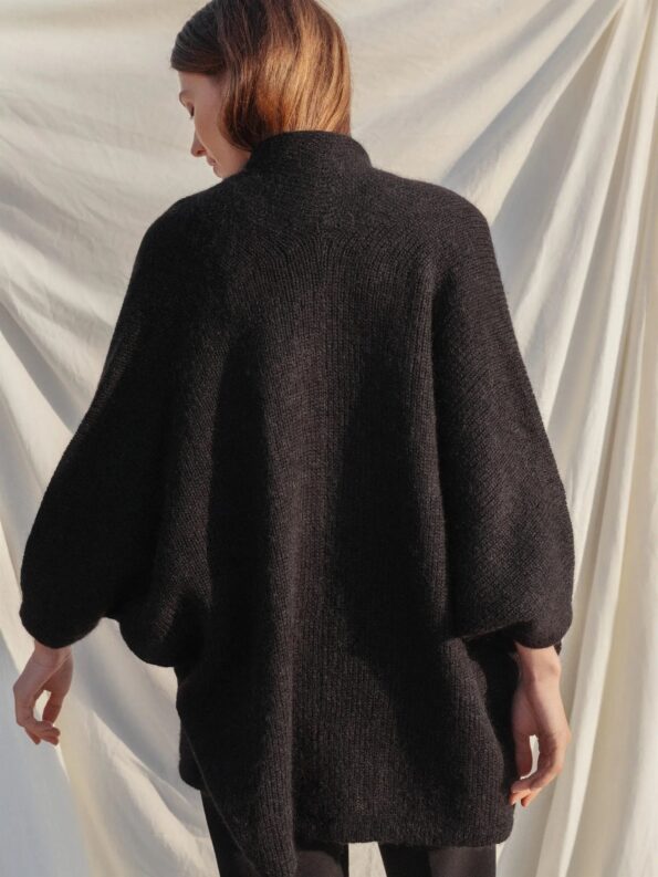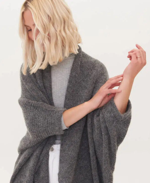 Indulge yourself in the luxury of our meticulously hand-knitted poncho, thoughtfully created with premium mohair wool and the finest pure new merino wool yarns, ensuring unparalleled softness and warmth.