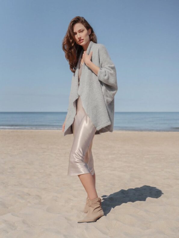 Capture the allure of our soft and enchanting open-front knitted top for women, designed to evoke the spirit of the holiday season while elegantly draping over your shoulders. Elevate your ensemble by pairing it with our exquisitely crafted mohair and merino wool poncho, offering a delightful blend of comfort and coziness. Perfect for your idyllic seaside escapes or enchanting family journeys through the forest.
