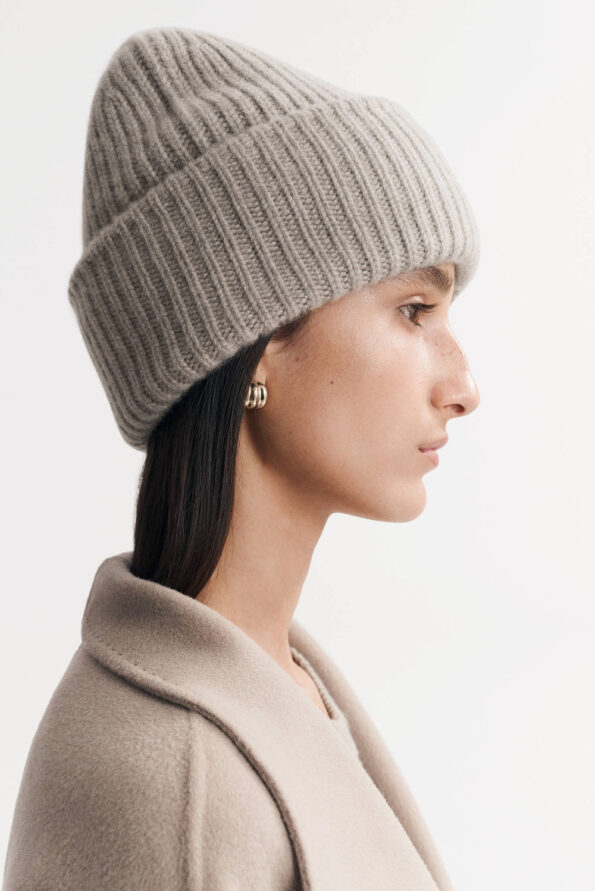 Ribbed knit beanie in 100% cashmere. One size and unisex.