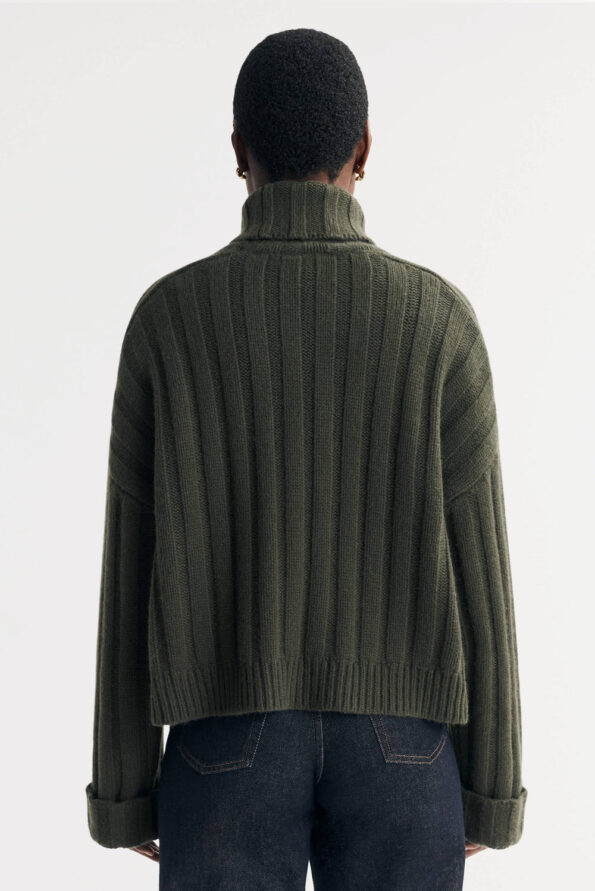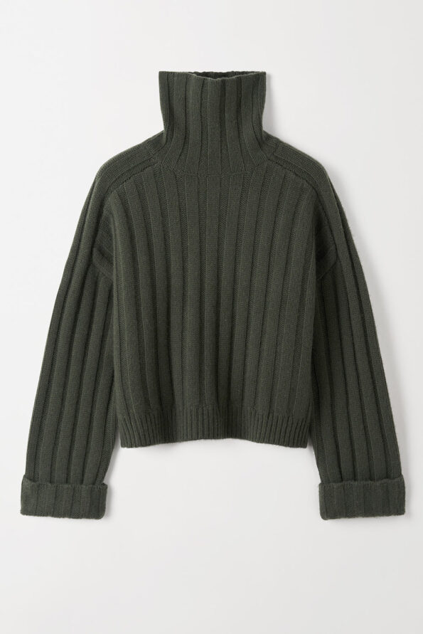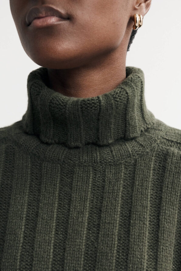 Ribbed knit turtleneck sweater in 100% cashmere.