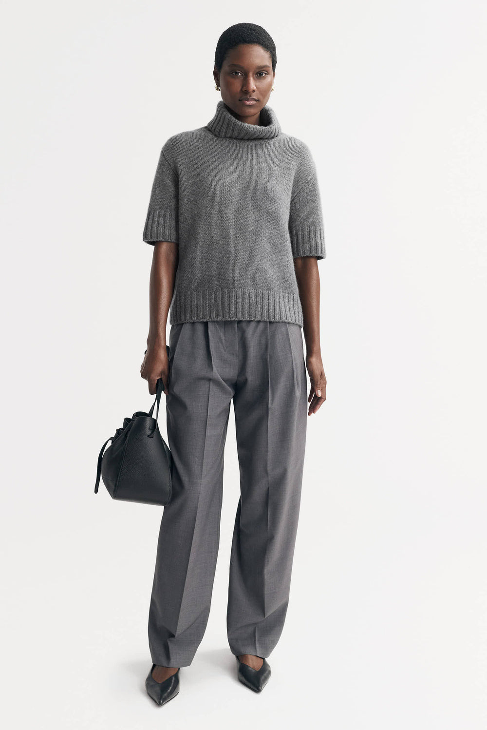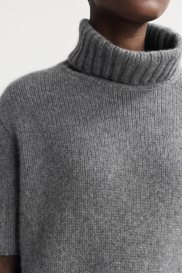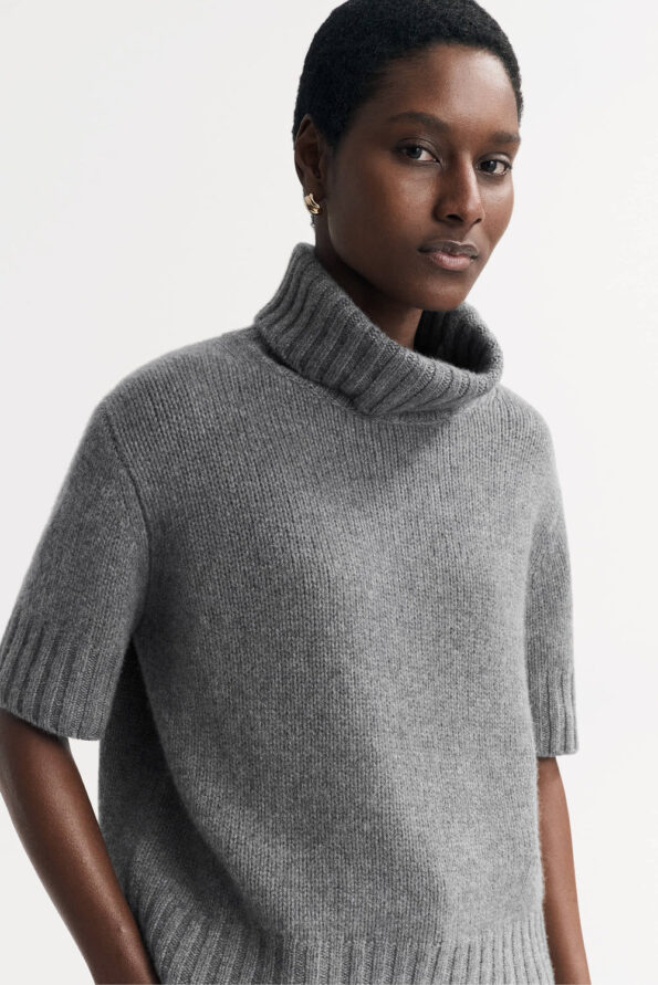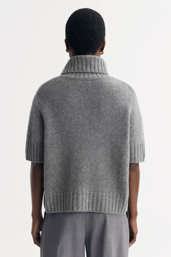 Short sleeve ribbed knit turtleneck knitted in 100% cashmere.