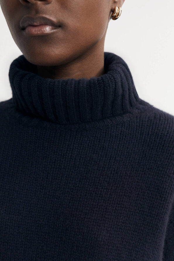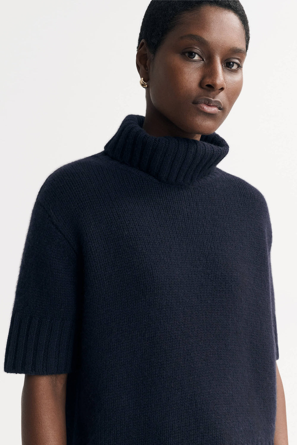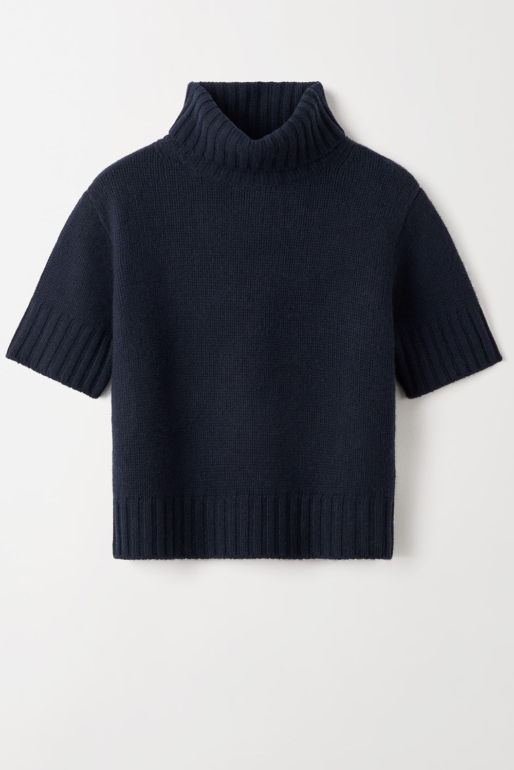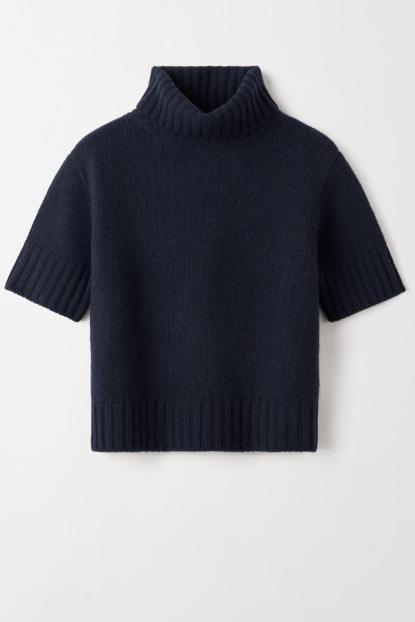Short sleeve ribbed knit turtleneck knitted in 100% cashmere.