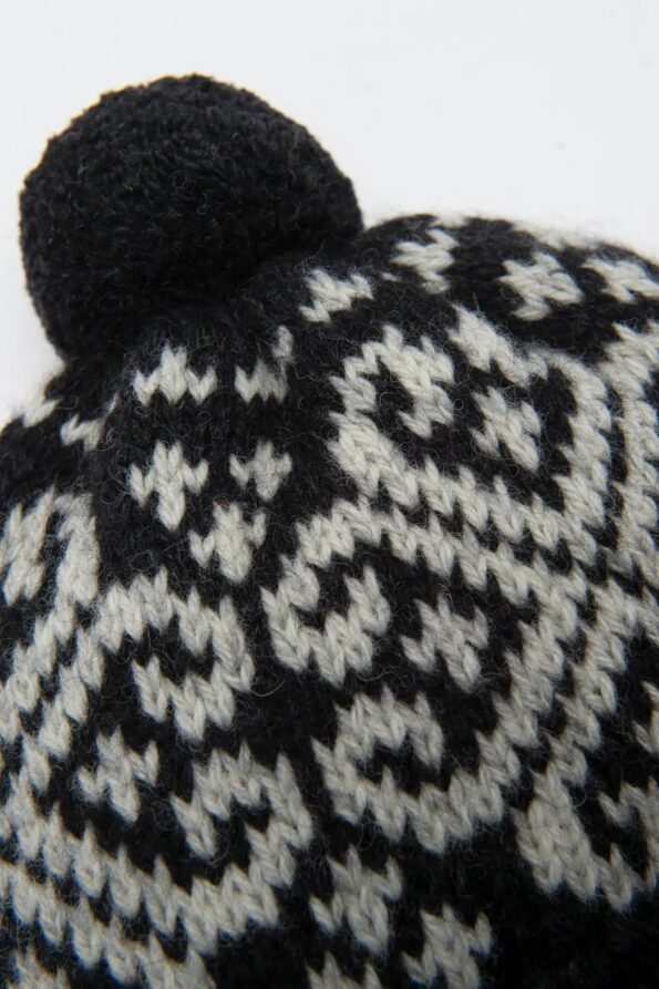One size grey color, pure wool bobble hat with ornaments is super warm & light. Ideal for chilly autum, winter weather. Breathable wool material will keep your head nice & warm. Features minimalist Wool House leather label.Made of 100% wool